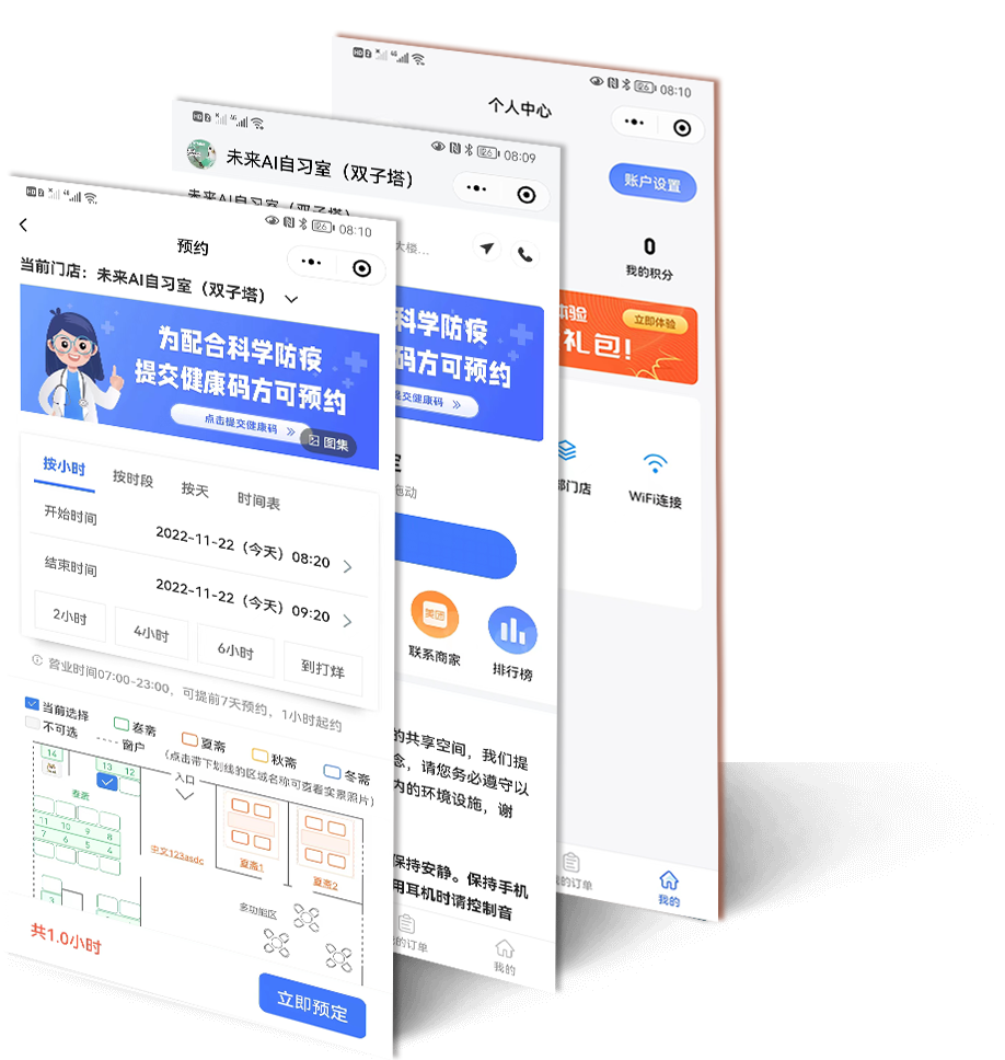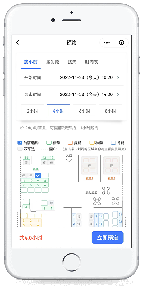 预约/入座/结束订单,全程智能化打破束缚:24h营业