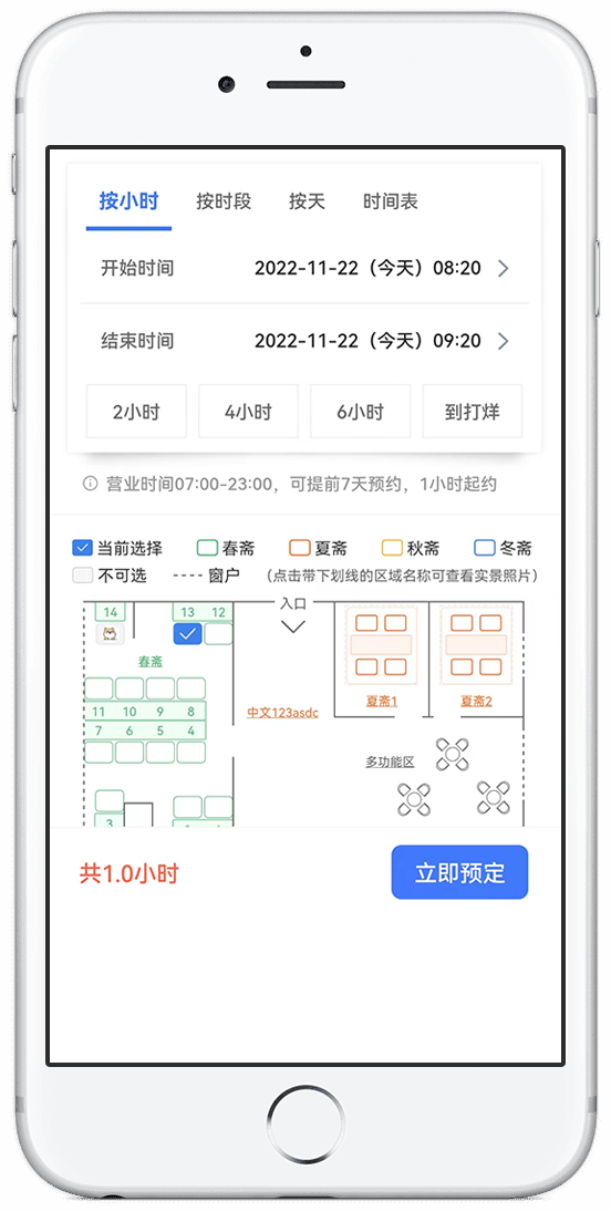 支持按小时/按每天时段/按天预约