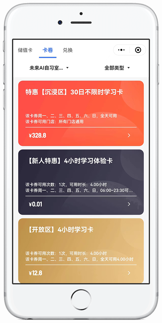 营业时间突破传统限制,几十种自定义卡券手动与自动相结合的多维预约方式